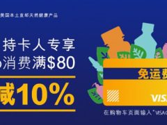 Visa中国持卡人在www.iherb.com或者www.iherb.cn购物满80美元,结帐时输入优惠码“VISACH”,可以享受以下优惠(不过80美金的订单必税,感觉不如满40美金无税订单): 免运费 立减10%(如有折扣,按折扣价计算,不含运费和税费) 额外10%忠诚奖励金...